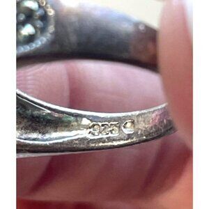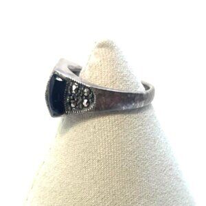 Vintage 925 Sterling Silver Art Deco Marcasite Onyx Ring Sz 8 Tramp Art Nouveau