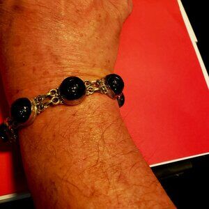 Vintage 925 Sterling Silver Black Onyx Bracelet