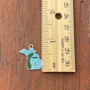 Vintage 925 Sterling Silver Blue Enamel "Michigan" State Map Pendant Charm