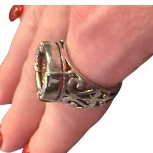 Vintage 925 Sterling Silver Carnelian Ring Filigree Boho Statement SZ.8 Courage
