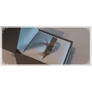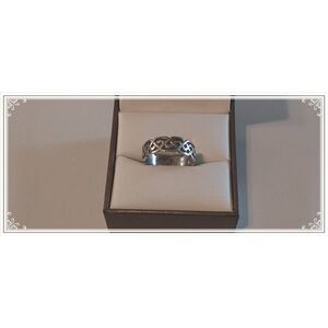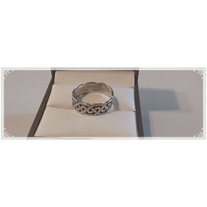 Pretty vintage 925 solid sterling silver band ring (stamped for authenticity) done in a celtic knot design with black enamel accepting. It is size 10. In perfect pre-owned condition.