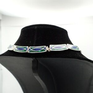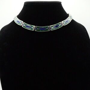 Vintage .925 Sterling Silver Choker Inlay necklace Lazuli Lapis & Malachite 90s