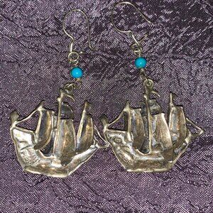 These earrings are crafted from 925 sterling silver, featuring a vintage design of a cutter ship and an aged patina finish for a unique, antique-inspired look. These are from my personal collection. They are quite heavy.
