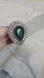 This stunning teardrop ring features a deep green center stone surrounded by sparkling crystal accents. Perfect for adding a touch of elegance to any outfit.