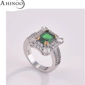 Product details Ring size 6 Material 925 Sterling Silver,Metal,Zirconia Metal type Sterling Silver Gem type Cubic Zirconia About this item 100% product new imported high quality materials. 18k gold plating process. GYOEI Top quality AAA cubic zirconia stone. Emerald gives people a mysterious feeling, exudes a noble atmosphere, Full of dignified and elegant feminine charm, No woman can stop its charm. This ring is a beautiful and elegant cocktail ring, a perfect anniversary gift, wedding gift, mother's day gift, birthday gift, holiday gift or gift, I love you! See more About this item