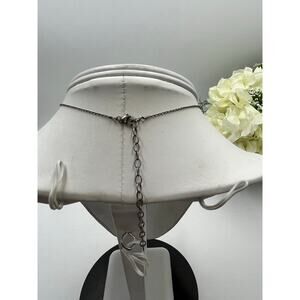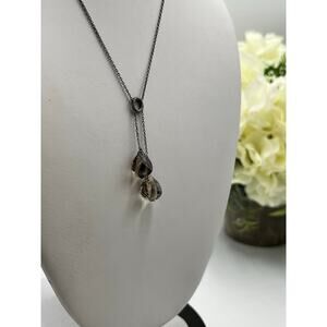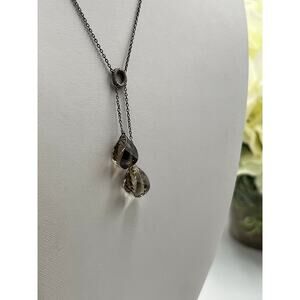 This elegant sterling silver necklace features two beautiful smoky quartz teardrops suspended from a delicate 20-inch oxidized chain. The natural quartz stones measure approximately 13mm x 9mm each and display lovely translucent smoky hues with organic variations that make each stone unique. The necklace is crafted from genuine 925 sterling silver, with hallmark visible on the clasp. The oxidized finish on the chain creates a beautiful vintage aesthetic that complements the earthy tones of the quartz stones. The dual-stone design adds visual interest with its asymmetrical drop style, where stones dangle at different lengths (approximately 1 3/4 inches total drop). Total weight: 4.6 grams, indicating solid quality construction. The piece is in excellent condition with natural patina on the chain that enhances its character.