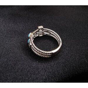 Crafted with twisted silver bands that intertwine like vines of fate, this ring is adorned with vivid faux turquoise cabochons and sparkling clear cubic zirconia stones. The mix of teardrop, oval, square, and round settings creates a rhythm of balance—earth meets sky, modern meets myth.
