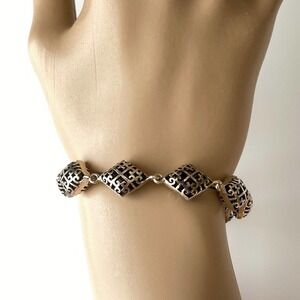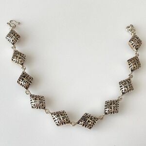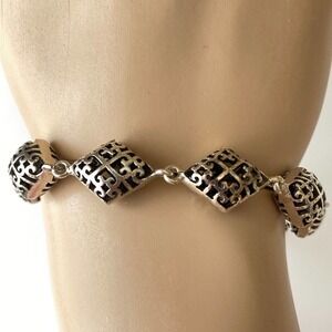 Vintage 925 Sterling Silver Filigree Heart Openwork Chain Link Bracelet