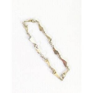 Vintage 925 Sterling Silver Footprint Link Bracelet 7.5" Anklet Baby Feet