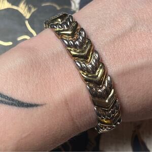 Welcome to the Bohemian Maven and thank you to both my new and long time customers for the ongoing support of my small business! You make it possible for me to continue hunting daily for unique treasures for you.Welcome to the Bohemian Maven! And a big thank you to my wonderful customers for supporting my small business. Gorgeous two-tone Italian Sterling unisex bracelet.