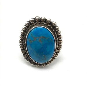 Vintage 925 Sterling Silver Large Chunky Turquoise Statement Ring Size 7