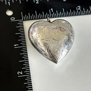 Lovely Vintage 925 Sterling Silver Large Puffy Heart Floral Scroll Etched Pendant