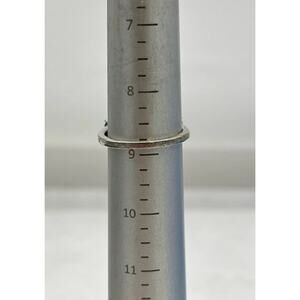 Make a statement with this elegant vintage sterling silver cocktail ring, spotlighting a delicate light-blue topaz cabochon set in a beautifully detailed wide-band setting. Crafted with authentic .925 sterling silver, this size 8.75 piece exudes vintage glamour with timeless appeal.