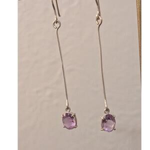 Vintage 925 Sterling Silver Long Bar Drop/Dangle Amethyst Gemstone Earrings. Pre-owned, these earrings are in excellent vintage condition. See photos for measurements.