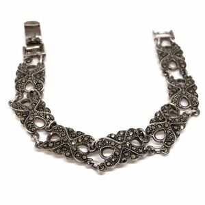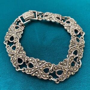 Vintage 925 Sterling Silver Marcasite Deco Style Link Bracelet 7.5"