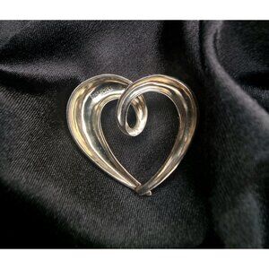 This elegant vintage brooch from the early 2000s is crafted in 925 sterling silver and features a unique open-heart swirl design. The surface is adorned with sparkling marcasite stones, giving it a timeless and sophisticated look.
