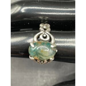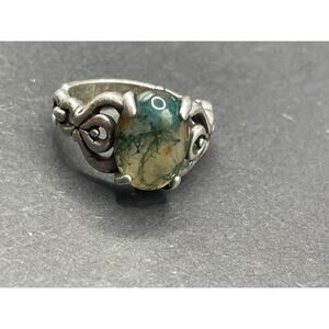 Vintage 925 Sterling Silver Moss Agate Gemstone Ornate Jewelry Ring Sz 6 6.45g