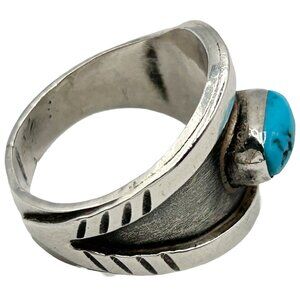 Vintage 925 Sterling Silver Native American Turquoise Ring - Size 7.5