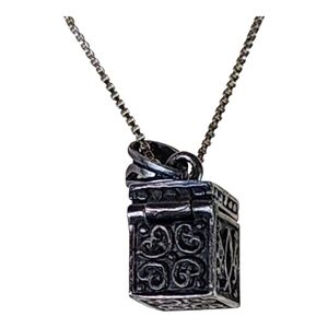Crafted from solid .925 sterling silver, the pendant exhibits a rich patina and oxidized detailing that enhances its antique charm and gives it a timeworn, Old World feel. The box opens to reveal a tiny compartment ideal for holding a prayer, essential oil-infused cotton, keepsake note, or gemstone chip—an especially meaningful option for lovers of symbolic jewelry or those practicing intention setting or aromatherapy.