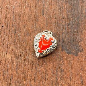 Vintage 925 Sterling Silver Red Enamel Repousse Swirl Puffy Heart Bracelet Charm