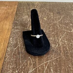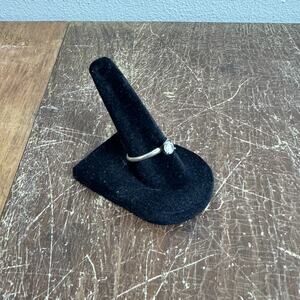 Vintage 925 Sterling Silver White Rhinestone Solitaire Engagement Ring Size 7