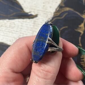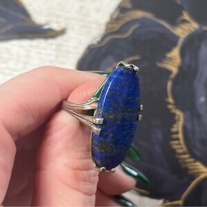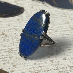 Vintage 925 Sterling Silver and Large Blue Lapis Lazuli Stone Silver Ring D2