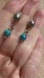 Very fun vintage blue green created fire opal bead on vintage Sterling silver clip earrings.