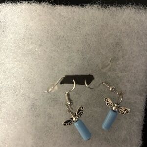 Gorgeous angel earrings with gothic like beautiful seemingly vintage styled jewelry/ earrings in a beautiful deep violet wings Gothic like angel wings tarnished to perfect beauty with what appear to be candles in ceramic glass