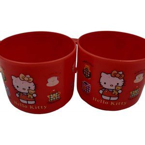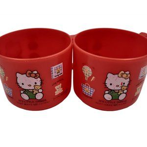 Vintage 94 96 Hello Kitty Sanrio Set 2 Red Pink Plastic Plates 2 Red Cups 1 Fork