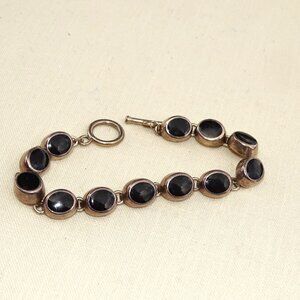 Vintage 950 Sterling Silver and Onyx 7 1/2" Toggle Bracelet