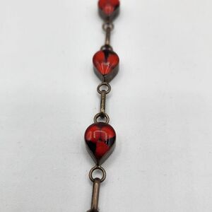 Vintage 950 silver & red glass teardrop 8.5" bracelet
