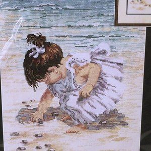 Vintage '96 Janlynn #29-19 Cross-Stitch Kit 'Collecting Shells' by Nancy Cole