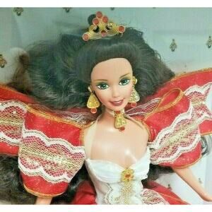Vintage 97 Happy Holiday Barbie SPECIAL EDITION 17832 Red Gold Lace Bow Brunette