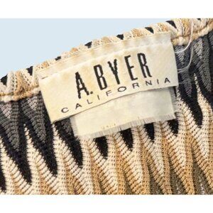 Nice vintage top by A. Byer California. CIrca 80s / 90s. Pullover style. V neck. Zig zag pattern. Stretch material. 100% polyester. Size small. Pre-owned and gently worn in really nice condition!