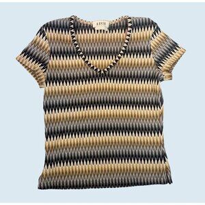 Vintage A. BYER California Zig Zag V Neck Short Sleeve Top Shirt Blouse Sz S