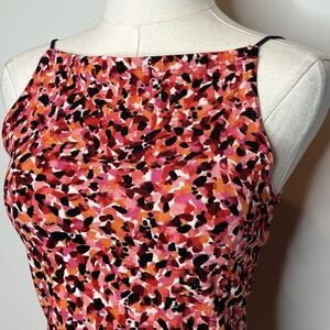 Bring the heat to your wardrobe with this bold and playful vintage A. Byer California tank top! Featuring a vibrant abstract print in shades of pink, orange, red, and black, this women's sleeveless cami is a fun throwback to early 2000s Y2K fashion.