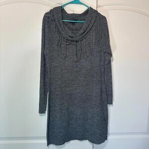 Vintage A. Byer Grey Sweater Dress Cowl Neck Fringe Mini Dress Comfy Size: LargeReview photos for excellent condition.