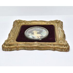 There are no chips or cracks. Due to its age, there is a little fuzz on the velvet. There is a divot in the velvet with a mark on the silver coloring of the bottom of the cameo. Best seen on the last photo.