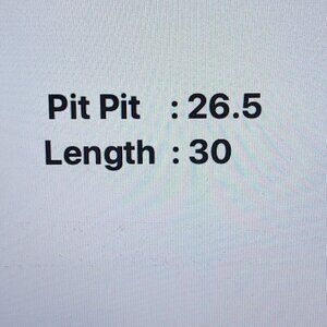 Pit to pit = 26.5 inches, Length = 30 inches.