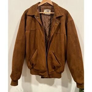 Vintage Collezione Faux Suede Bomber Jacket Brown Zip Snap