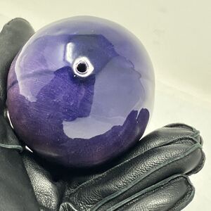 Very glossy so photos show reflections --I took photos under two different types lighting to try to account for this. No chips or breaks. A few tiny scratches. Handpainted so there is some variation in purple shade. See photos