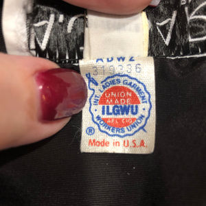 According to the ILGWU label this dress is from 1974 - 1995. The A.J. Bari label with the RN number I believe was pre 1990's.