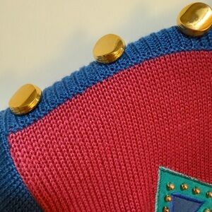 Vintage A J Classics by Aseret 90’s Sweater L Geometric Appliqué MTV Stripes NWT