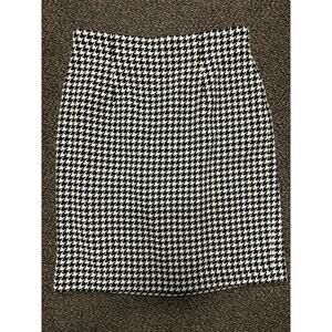 This is a Vintage Anne Klein Black and White Pattern Skirt. It is a size 6. Its waist is 28 inches all around, the hips are 32 inches all around, and it is 20 inches in length.