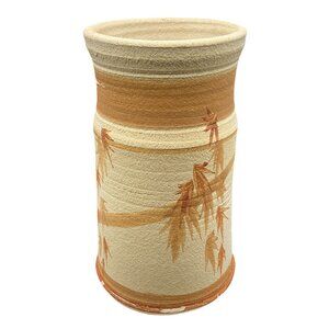 Vintage A La Carte Handcrafted Textured Ceramic Vase With Bamboo Design Signed 1