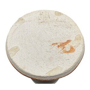 This vintage vase, crafted in 1980, showcases a unique bamboo design encircling its textured surface. Its neutral tones and intricate detailing reflect a minimalist yet sophisticated aesthetic. Ideal for collectors or as a standalone decorative piece, this signed ceramic vase exudes timeless elegance and craftsmanship.