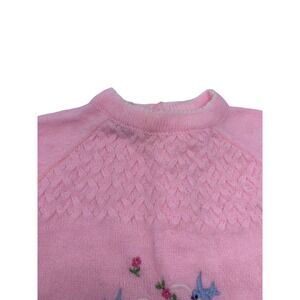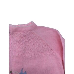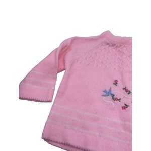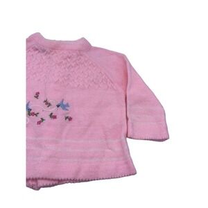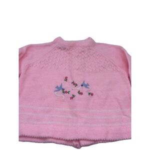 Vintage A Little Angel Sweater Baby 0-3M Pink Birds Embroidered Girls 1960s EUC