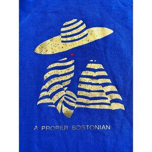 Vintage A Proper Bostonian Crewneck Sweatshirt, Size Medium Tall, Tultex, Made in USA, Blue and Gold, Boston Novelty Pullover Sweatshirt