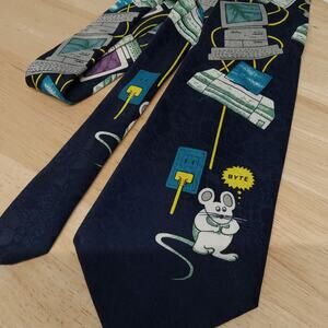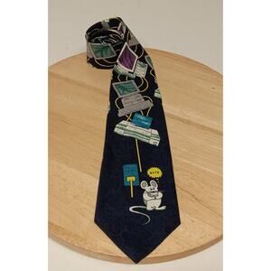 Vintage A. Rogers Tie Men's Techy Mouse Cartoon Computers Blue