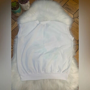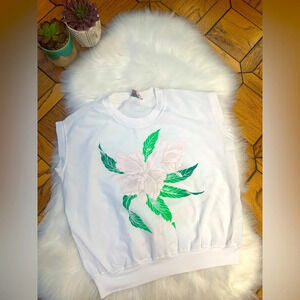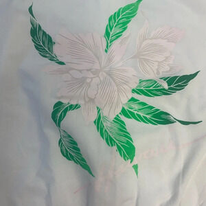 Super cute with habiscus flower and leaves. This shirt has elastic around the waist and arms. Actual shirt does not have stretch.